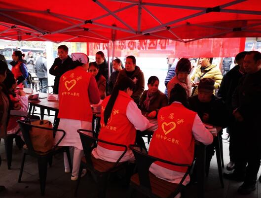 國際志愿者日,市中心醫(yī)院開展義診活動(dòng) 發(fā)布時(shí)間:2018年12月07日 10:36:36 預(yù)覽:2364次 通訊員何燕、龍開云報(bào)道:2018年12月5日,國際志愿者日,衡陽市中心醫(yī)院團(tuán)委組織心內(nèi)科徐睫、內(nèi)分泌科吳俊靈、兒科胡俊喜等7名專家志愿者聯(lián)合沿江社區(qū)走進(jìn)衡陽市民俗文化廣場開展義診服務(wù)。 上午9點(diǎn),專家志愿者們不畏嚴(yán)寒、冒著蒙蒙細(xì)雨抵達(dá)目的地,當(dāng)時(shí)已聚集很多市民。專家志愿者們馬上進(jìn)入工作狀態(tài),熱情地接待每一位市民,為他們測血糖、量血壓以及進(jìn)行健康咨詢、答疑解惑等。志愿者們看到前來問診的市民臉上洋溢的幸福,心里倍感欣慰,并表示今后將盡自己的微薄之力服務(wù)更多的老百姓。 據(jù)了解。本次活動(dòng)共義診80余人,免費(fèi)為50多位市民測量了血糖、血壓,發(fā)放健康宣傳冊40余本。