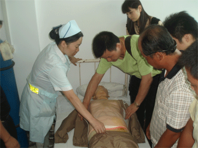 我院舉行急救知識(shí)培訓(xùn)班(圖) 發(fā)布時(shí)間:2006年8月11日 預(yù)覽:6549次 為提高游泳場(chǎng)所救生員急救水平,我院近日在遠(yuǎn)程教室和示教室舉辦急救知識(shí)培訓(xùn)班,來自市游泳場(chǎng).熊倪跳水學(xué)校等單位的教練和救生員系統(tǒng)學(xué)習(xí)了心肺復(fù)蘇.腦組織保護(hù)等溺水現(xiàn)場(chǎng)急救基本操作技能。圖為培訓(xùn)學(xué)員通過人體模特學(xué)習(xí)。(鄒建軍攝)