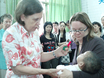 英國(guó)皇家醫(yī)學(xué)會(huì)專家來(lái)我院講學(xué)(圖) 發(fā)布時(shí)間:2006年9月14日 預(yù)覽:14957次 9月12日,應(yīng)我院邀請(qǐng),英國(guó)皇家兒科醫(yī)學(xué)院榮授院士、兒童神經(jīng)內(nèi)科顧問(wèn)醫(yī)生、嬰幼兒發(fā)展研究協(xié)會(huì)會(huì)長(zhǎng)丹尼絲·查理斯(Denis Challis)教授和英國(guó)兒科顧問(wèn)醫(yī)生帕特麗西婭·湯姆遜(patricia Tomsou)一行來(lái)我院講學(xué),來(lái)自全市各級(jí)醫(yī)院的150名兒科專業(yè)醫(yī)務(wù)人員參加了此次學(xué)術(shù)活動(dòng)。 英國(guó)專家通過(guò)授課和現(xiàn)場(chǎng)演示的形式,系統(tǒng)介紹了腦癱、孤獨(dú)癥等兒童神經(jīng)系統(tǒng)發(fā)育障礙的評(píng)估、預(yù)防對(duì)策與治療新進(jìn)展。專家們指出,由于環(huán)境、生物和疾病等因素的影響,兒童神經(jīng)系統(tǒng)發(fā)育障礙的發(fā)病率在國(guó)際上正呈上升趨勢(shì)。專家們列舉了“十條診病依據(jù)”,動(dòng)作是否遲緩?視物是否困難?聽(tīng)覺(jué)是否存在問(wèn)題?能否明白大人講話意思?四肢活動(dòng)是否受阻?有沒(méi)有癲癇?是否有模仿能力?能否講話?2歲時(shí)可否說(shuō)出至少一個(gè)物體?有沒(méi)有其他智力落伍跡象?專家們特別強(qiáng)調(diào)在出生前4個(gè)月是預(yù)防腦癱等疾病的關(guān)鍵時(shí)期,早期干預(yù)對(duì)達(dá)到患兒最大潛能非常重要。專家呼吁全社會(huì)要高度關(guān)注心智方面有缺陷的兒童,兒科醫(yī)師要在以家庭為中心的早期干預(yù)服務(wù)中充當(dāng)重要角色,要通過(guò)進(jìn)步的專業(yè)知識(shí)以技巧,提高家長(zhǎng)對(duì)嬰兒期行為的理解以及影響孩子行為的能力。(鄒建軍)