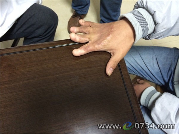 肖浩的手擺在桌子上讓醫(yī)生檢查,他的手指末節(jié)神經(jīng)壞死,指蹼比普通人的要靠上一些,這缺陷會影響肖浩的勞動力